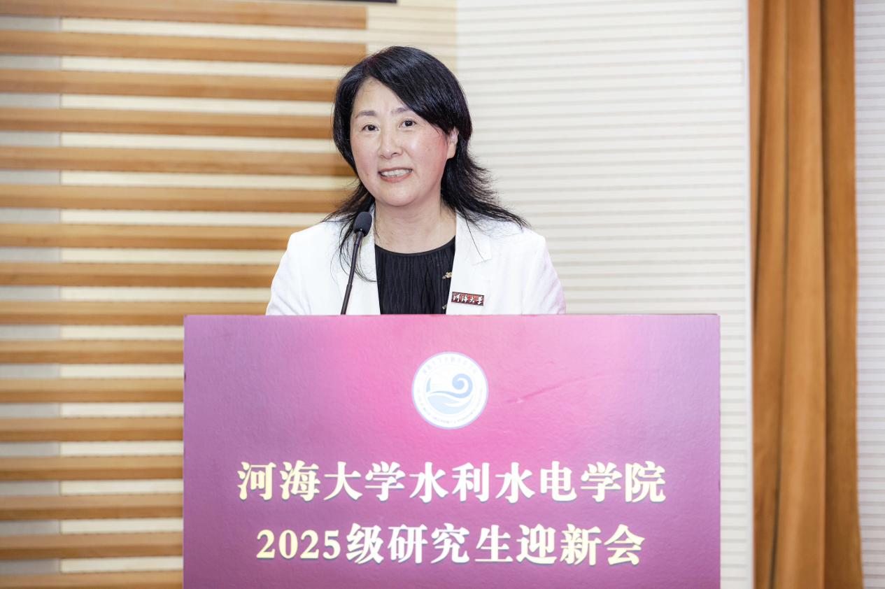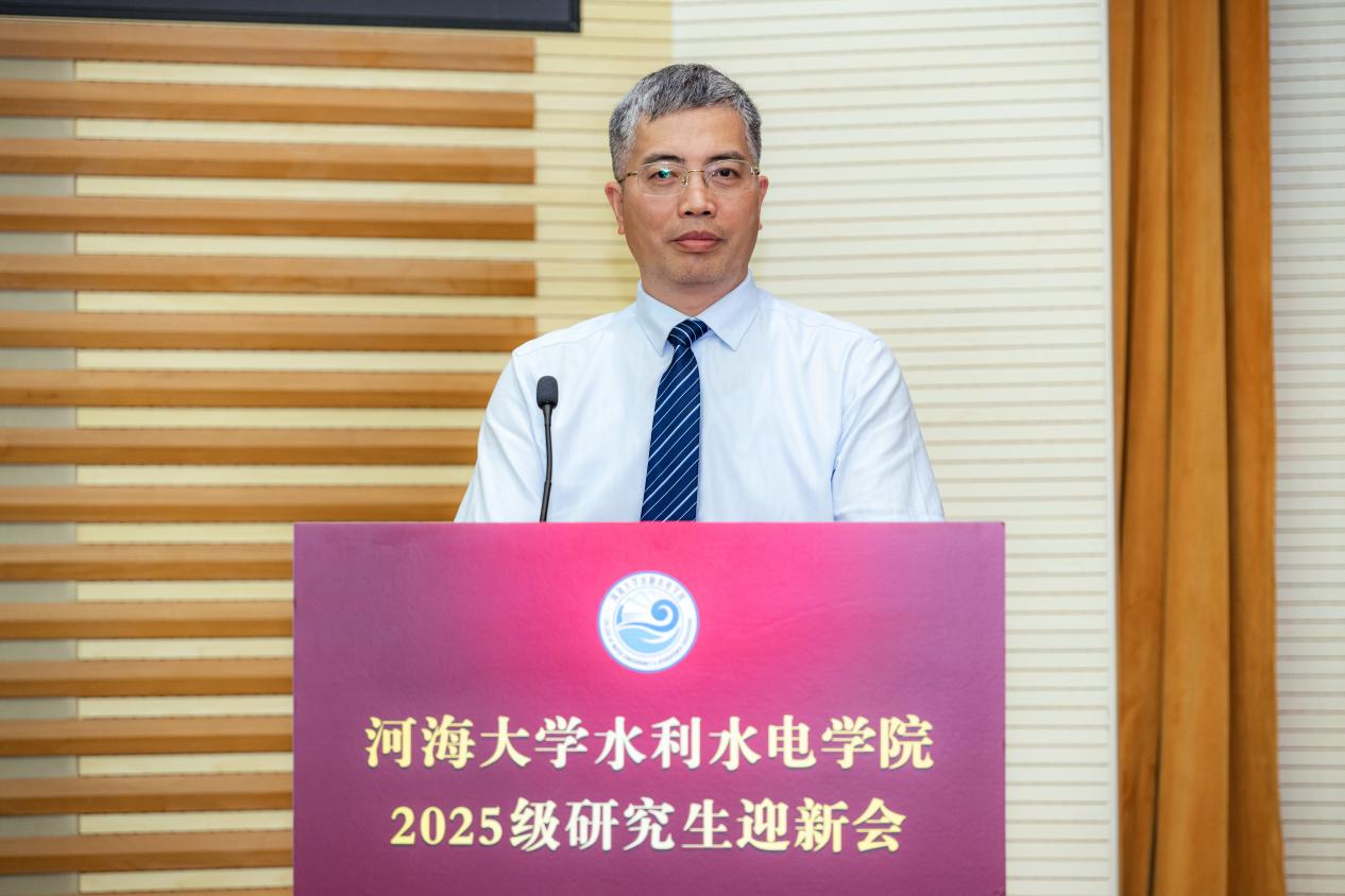 王媛院长代表学院全体师生员工,向2025级新同学的到来致以热烈的欢迎和诚挚的祝贺。她结合学院的历史沿革、学科发展以及师资力量,详细介绍了我院在办学成就与科研实力方面的突出成果。她提到,研究生阶段是攀登科学高峰的新起点,也是奠定学术根基、孕育创新成果的黄金时期。她指出,同学们一要永葆赤子之心,做江河安澜的守护人。凝聚智慧、勇于担当,在皇冠体育官网磨砺成敢闯敢干的弄潮儿,将个人理想融入强国复兴的江河伟业。二要秉持求知之念,做滴水穿石的实干家。以解决真问题、创造真价值为目标,让勤奋成为青春最厚重的底色,让扎实的专业能力成为未来搏击风浪的底气。三要敢闯未知之境,做现代水利的开拓者。敢于跳出思维定式、勇于探索未知领域,真正把创新成果写在祖国江河湖海之间,为发展水利事业新质生产力、推动高质量发展注入青春力量。