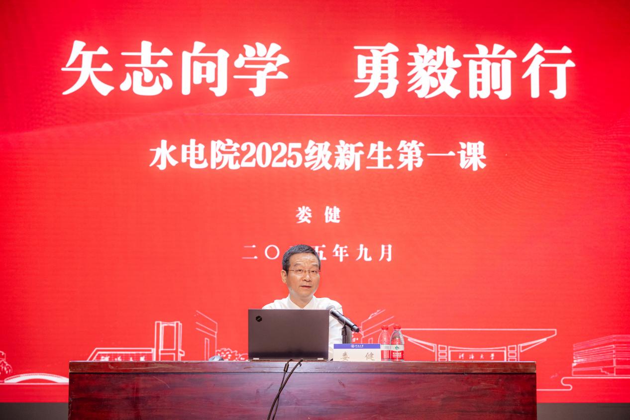 娄书记以轻松交流的方式,结合自己的求学、工作经历,向全体新生讲述河海大学的历史传承和水电人的使命担当,引导新生适应崭新的大学生活。娄书记对新生提出三点殷切要求:一是坚守初心,志存高远水利事业以服务国计民生为核心价值,需要将个人理想融入国家水利发展大局,勇担时代赋予的行业重任。二是勤奋学习,精益求精我院学生要深耕基础学科和专业知识,主动投身实验、实习与科研实践,以“钉钉子”精神实现理论与实操的深度融合,锤炼过硬专业素养。三是团结协作,全面发展立足水利工程系统性特点,在团队协作中补位共进依托学校学院平台提升综合能力,成长为兼具实干精神与创新活力的高素质水利人才。