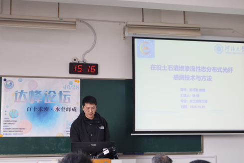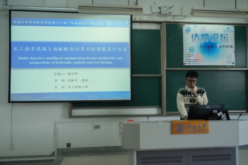 10月28日,河海大学第十四届“学海争锋”学术年会暨皇冠体育官网第十六届“达峰论坛”活动在西康路校区成功举办。本届论坛以“百十求索,水至峰成”为主题,设置水工结构工程会场、水力学与智水安工交叉会场、水利水电工程会场。活动邀请我院顾圣平、陈守伦、黄显峰、邵晨飞、朱延涛、徐津、刘琳等教师担任评委嘉宾,共有32名研究生出席论坛参与汇报,逾200名观众现场倾听。
