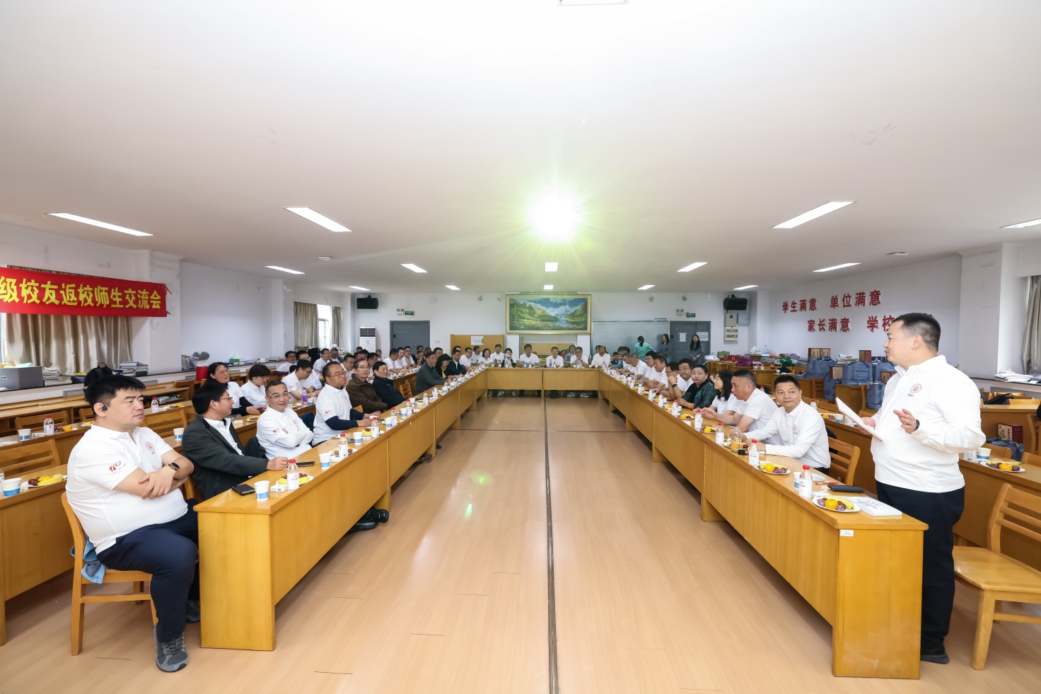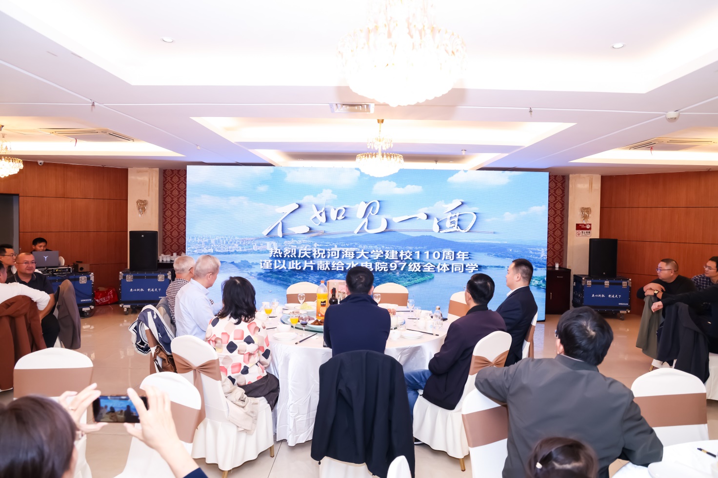 二十八载光阴流转,水利情怀薪火相传。在河海大学喜迎110周年校庆的隆重时刻,皇冠体育官网水电97级校友(水工、水动和农水3个专业)怀着对母校的深切眷恋与赤子之心,从祖国的四面八方汇聚而来,共赴一场跨越近三十载的“不如见一面”之约。此次入学28周年返校活动,既是校友们重温青春岁月、再叙同窗情谊的温馨相聚,更是以特殊方式为母校百十华诞献上的诚挚祝福。皇冠体育官网党委书记娄健,时任学院领导白明进,班导师沈长松、蔡付林、郑源,任课老师朱召泉、方国华,教学秘书何奇芳,辅导员张毅华与校友们欢聚一堂,共话往昔峥嵘,共绘发展蓝图。