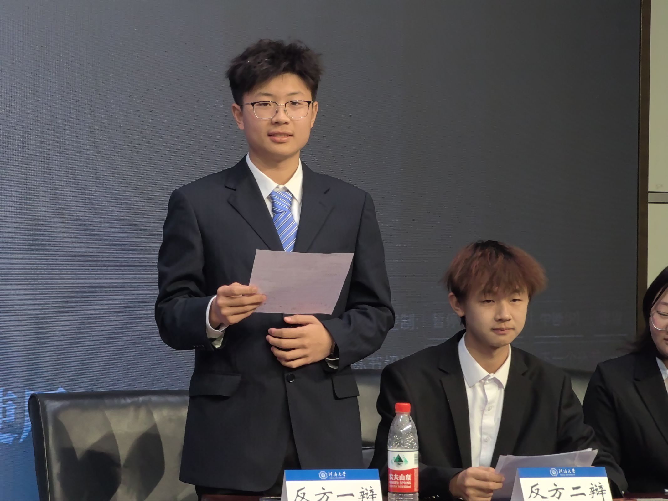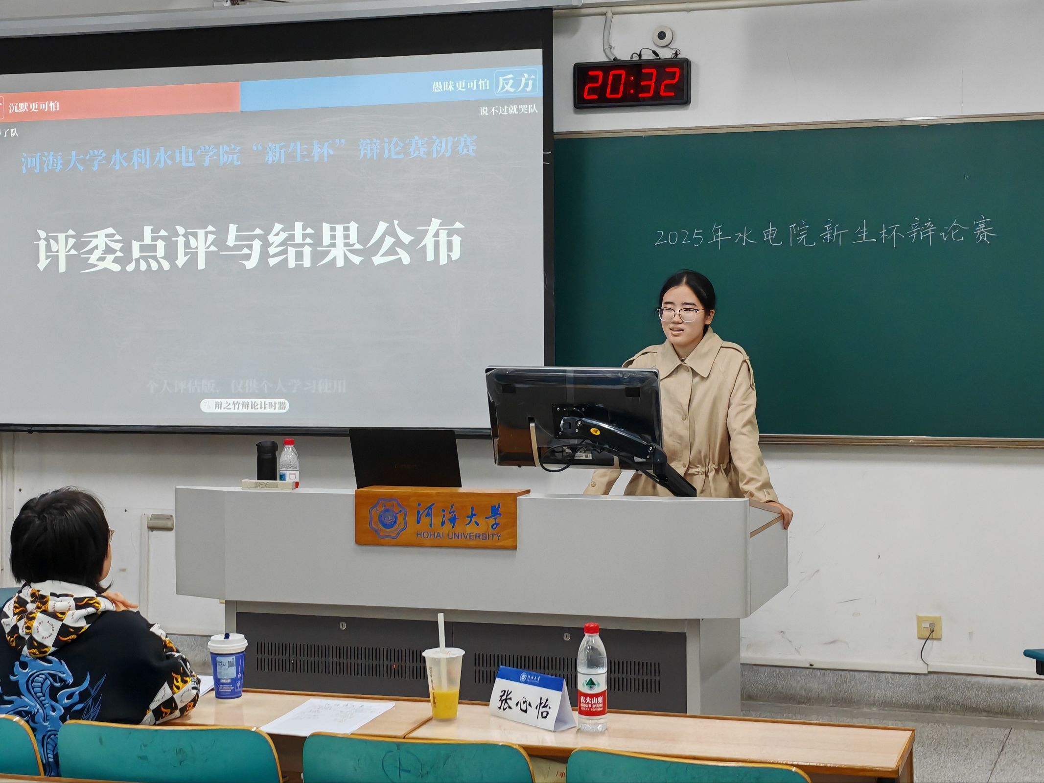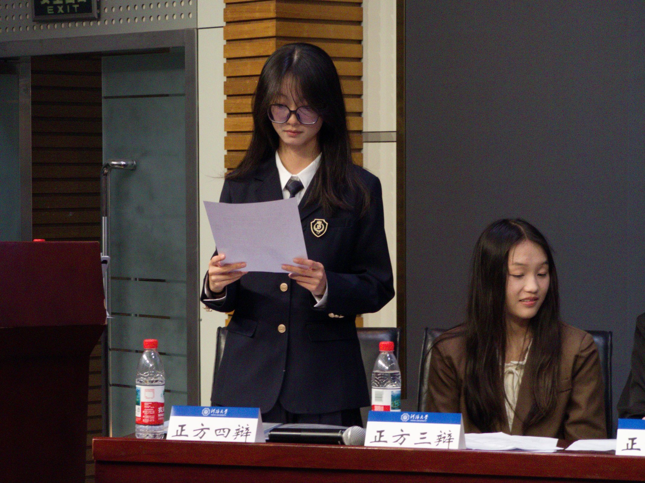 本次辩论赛决赛的专业评审团,由河海大学校辩论队22级许峻晞学长、皇冠体育官网辩论队24级李雪安琪学姐、谭郝学长组成。三位评委全程细致观察赛场交锋,精准捕捉辩手的逻辑亮点与表达巧思。赛后,评委针对双方辩手的辩论思路和技巧进行了细致点评,一针见血地指出了双方辩论中存在的问题以及更优的解法,同时也对他们的精彩表现予以鼓励。经过评委们慎重考虑,最终反方凭借更严谨的逻辑架构与默契的团队协作脱颖而出,摘得桂冠;正方四辩陈怡希同学以敏锐的临场反应、犀利的质询话术与深刻的价值阐释,获评“最佳辩手”。
