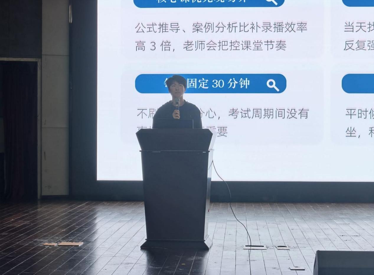 杨宇煊分享了学习高数的方法,强调同学们要注重听课效率,还要进行及时的课后复习并逐步建立知识体系。接下来向同学们展示了复习策略,并且着重提醒同学们切勿盲目刷题,一定要独立完成作业。最后向同学们提出一些其他建议如参与“名师殿堂”等讲座活动。