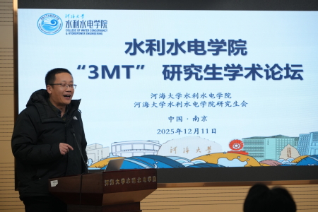赵兰浩副院长为本次论坛致辞。他表示,“3MT”论坛以“精简表达、通俗传播”为核心,既为研究生搭建了展示科研才华、激发学术灵感的优质平台,也对培养学生创新思维、提升专业素养与行业沟通能力具有重要意义。他寄语各位同学珍惜展示自我的宝贵机会,在思想碰撞中凝聚智慧、收获成长,未来主动投身我国水利水电事业高质量发展的实践中。