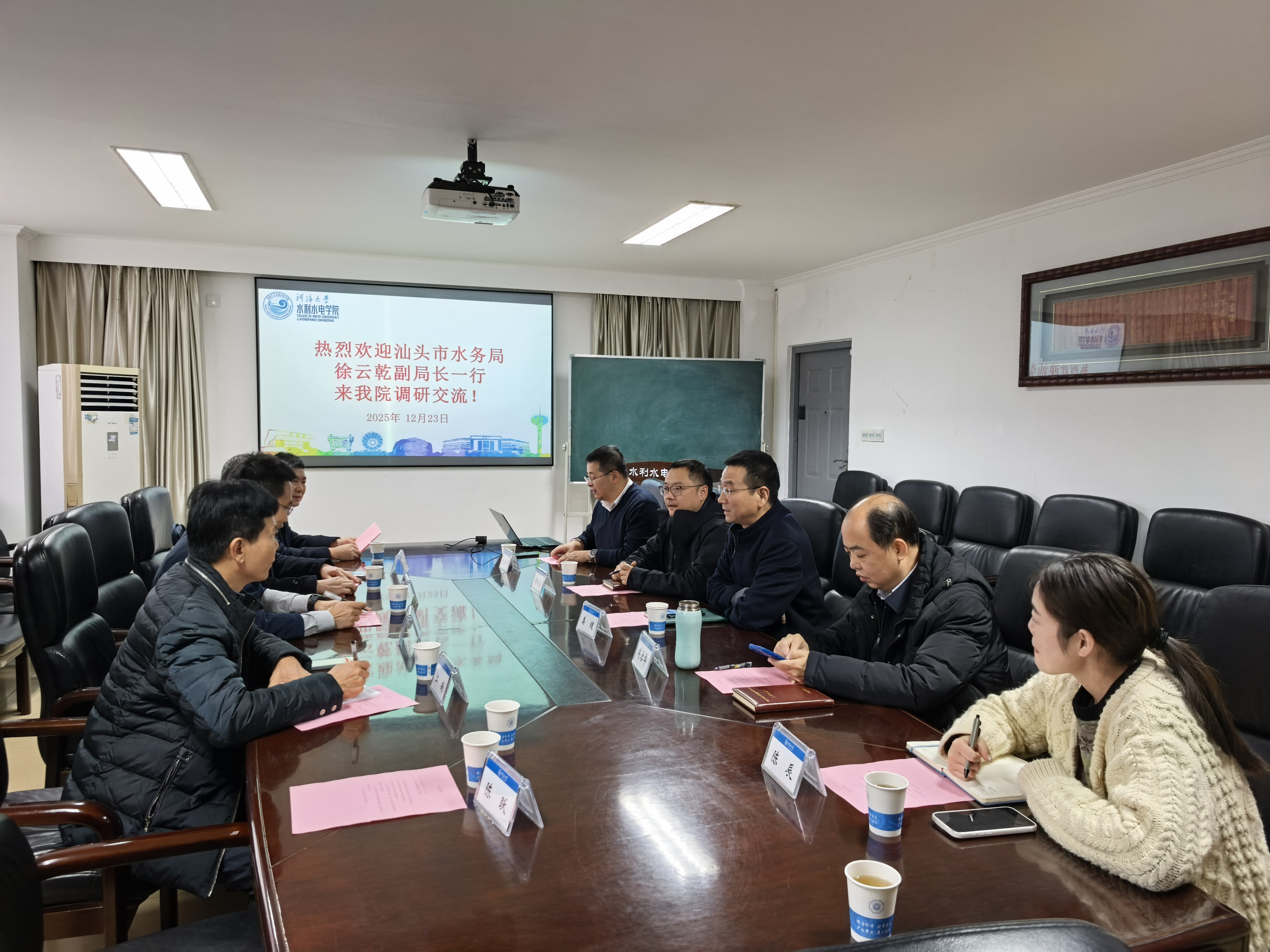 12月23日下午,汕头市水务局党组成员、副局长徐云乾一行到访皇冠体育官网,就深化校地合作开展交流座谈。汕头市水务局二级调研员韩映民、三级调研员江南、市水利学会理事长张介炳、水旱灾害防御科副科长陈跃,我院党委书记娄健、副院长冉启华、俞晓东,教授包腾飞,辅导员陈辰等参加座谈。