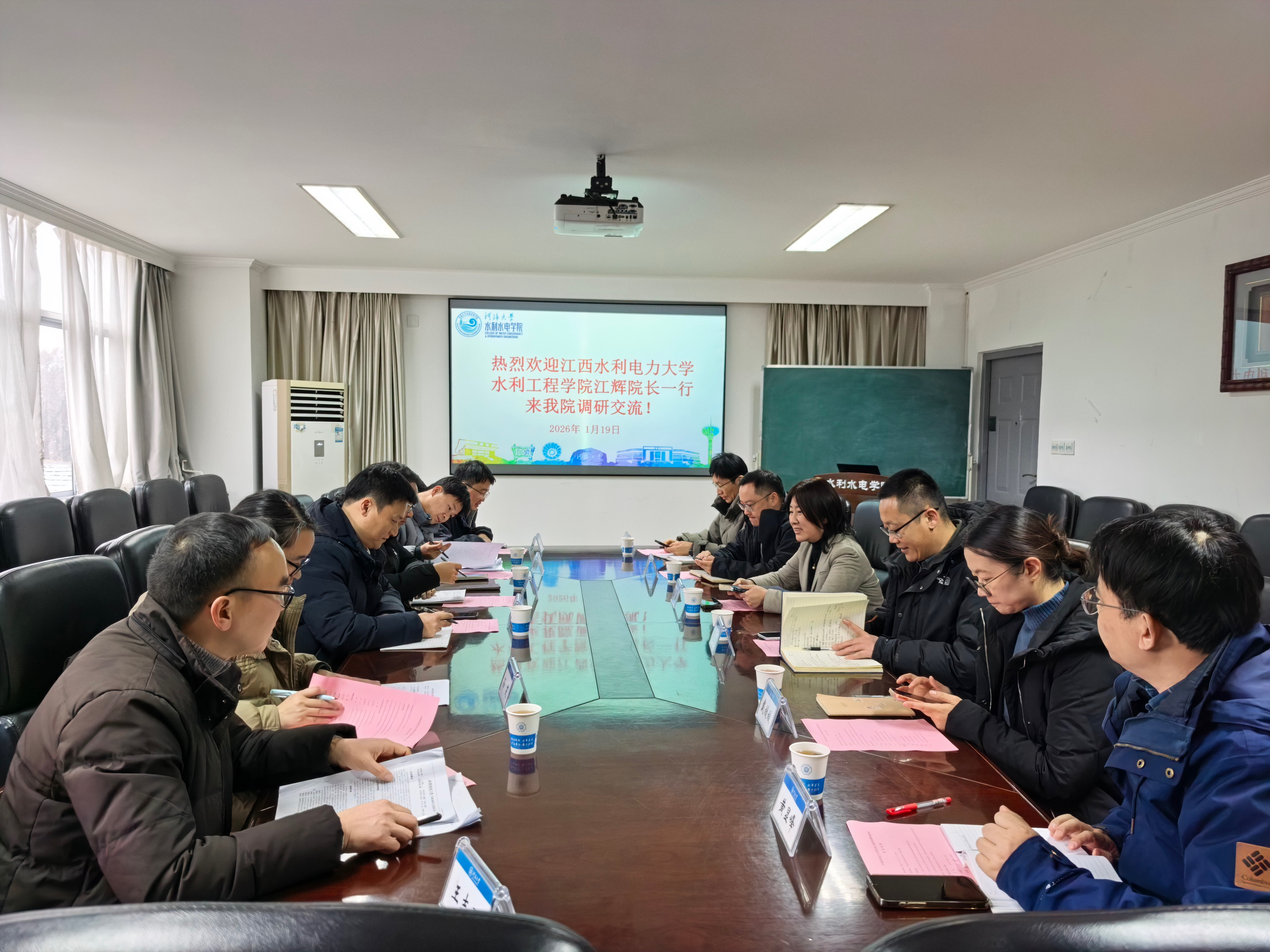 在交流研讨环节,双方围绕新时代水利类专业建设路径、教育教学改革创新举措、促进毕业生高质量就业的实践经验等议题展开深入探讨。双方专业负责人分别分享了各自在智慧水利、水利水电工程等专业方向的建设成果,并就课程思政融入、产教融合协同育人、实践基地建设等具体问题交换了意见。参会人员畅所欲言、凝聚共识,为两校水利学科的协同发展奠定了坚实基础。