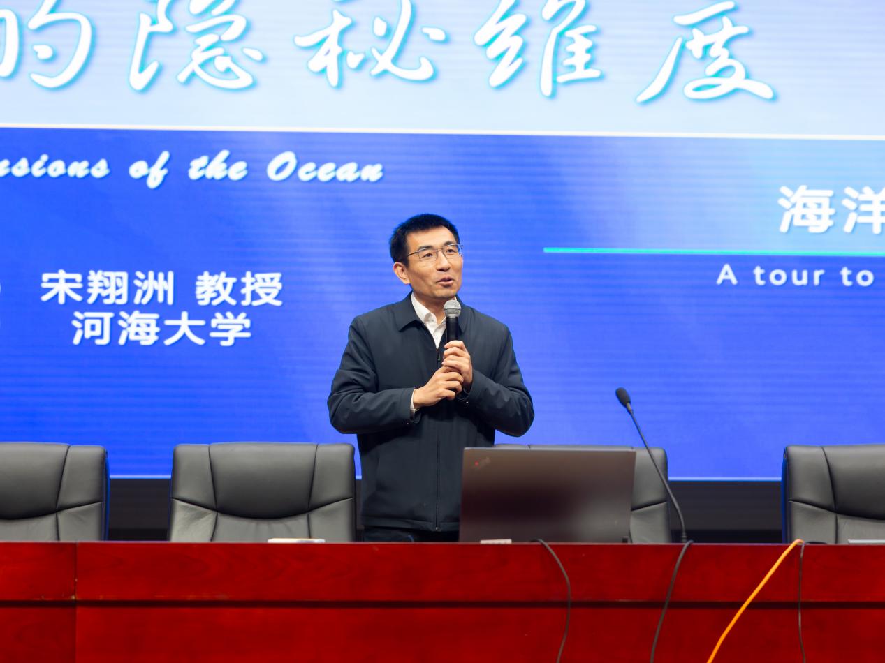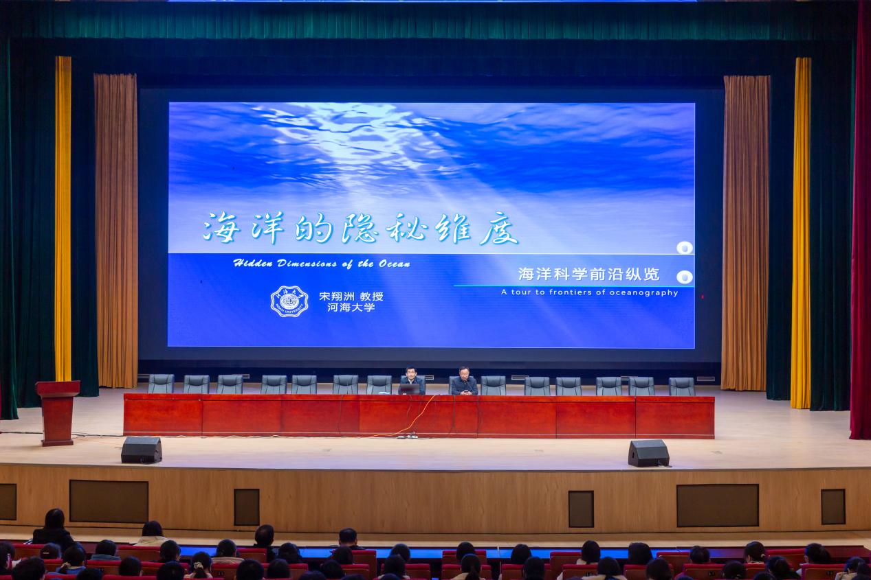 宋翔洲副校长为全体高三学生讲授河海大学金课《海洋的隐秘维度》,讲座兼具学术深度与科普温度。作为海洋科学领域的权威专家,宋翔洲副校长用仿真动画、生动案例、风趣语言,从大洋环流“大动脉”、中尺度过程“动脉树”、亚中尺度过程“毛细血管”、内波与混合“细胞”维度揭秘了海洋科学的前沿动态,科普了虚拟仿真、卫星遥感等探测利器从盲人摸象到洞若观火的贡献,揭示了海洋变暖、极端天气等挑战。讲座深刻诠释了新时期向海图强的战略意义,全场师生沉浸式体悟到河海金课的育人情怀与学术底蕴。